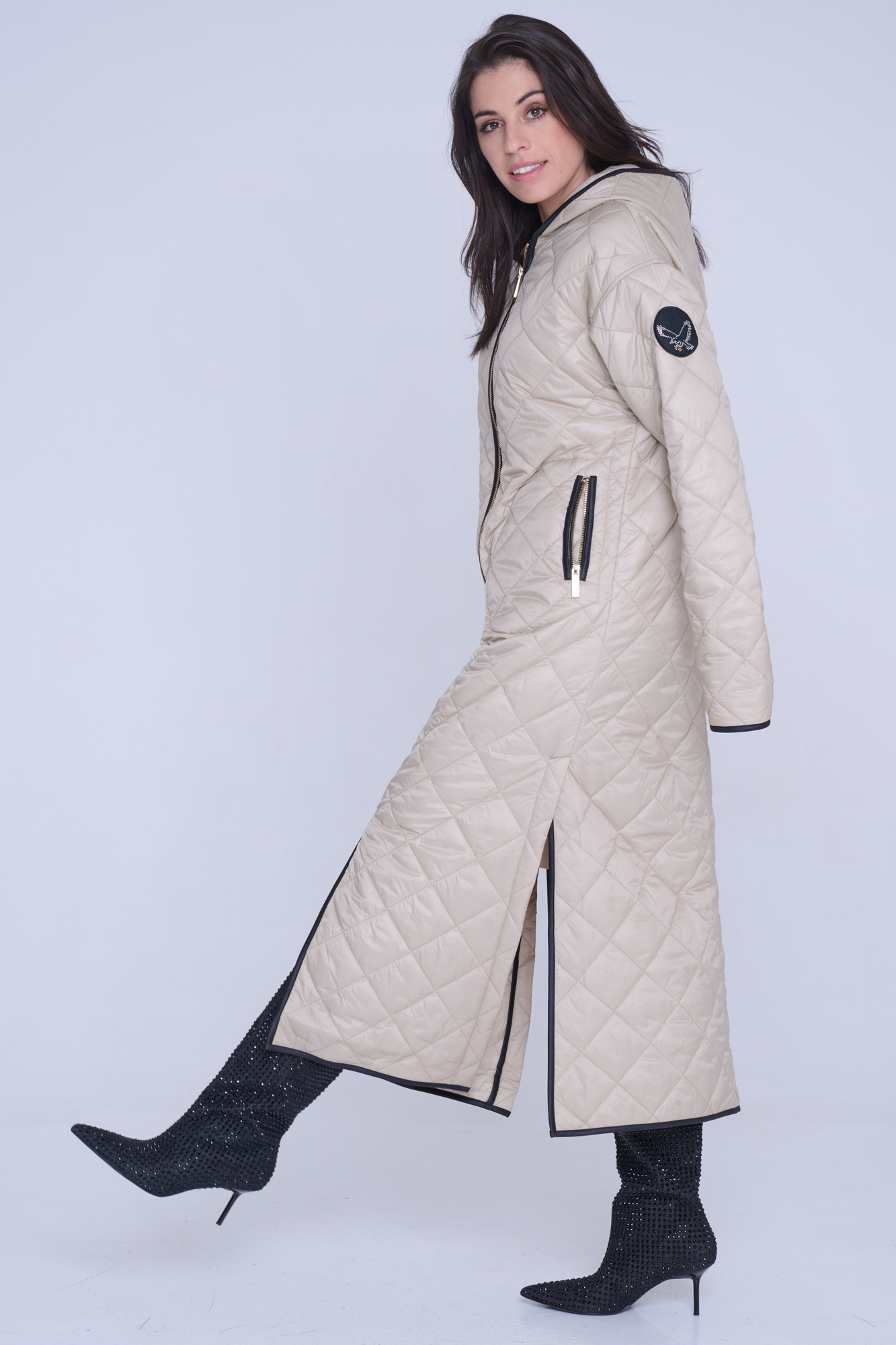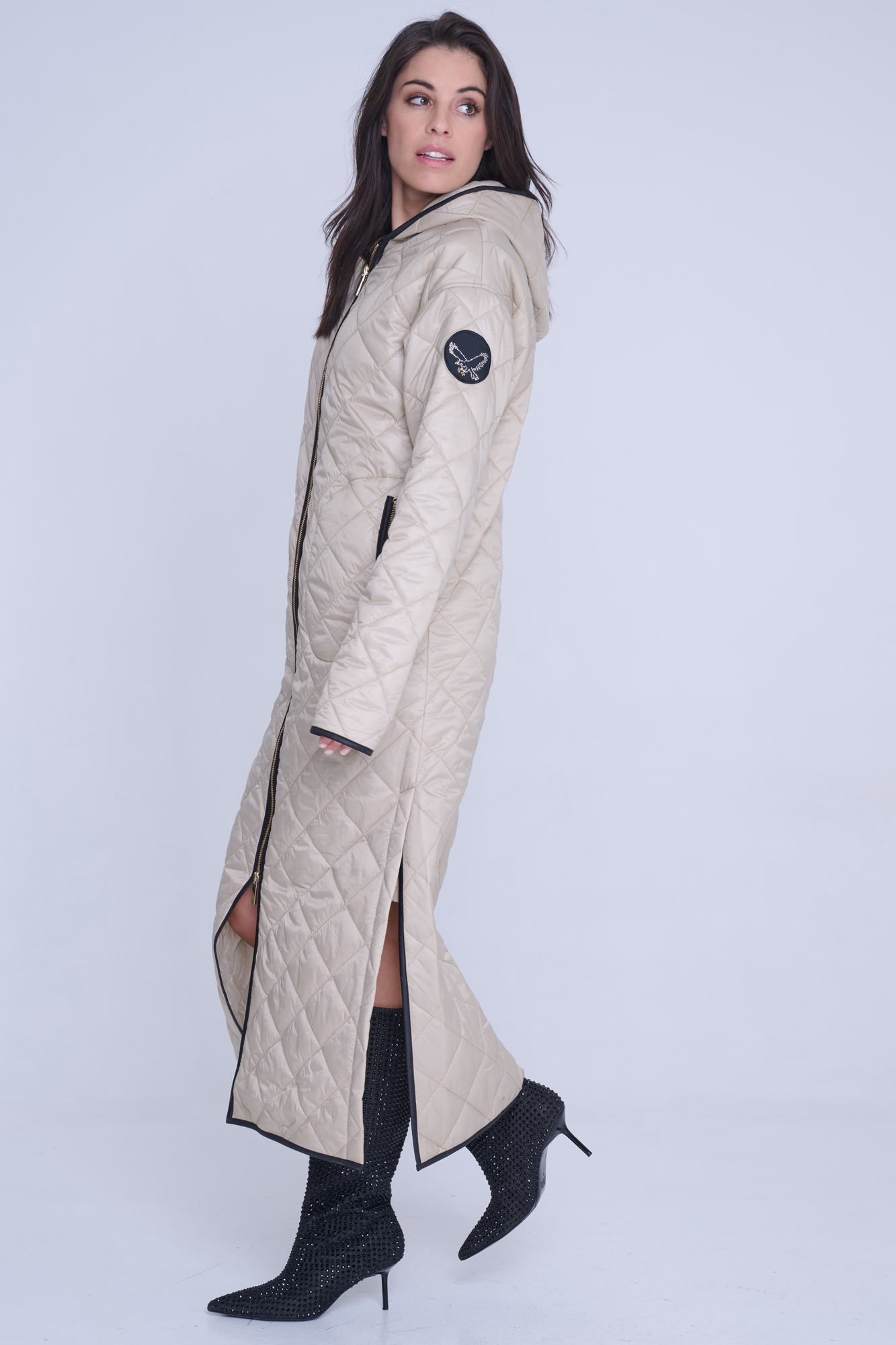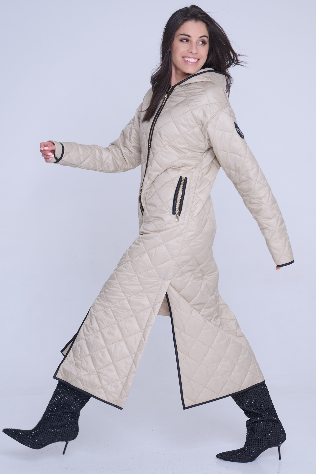 • detail 643-259B dlouhý lehký prošívaný kabát
