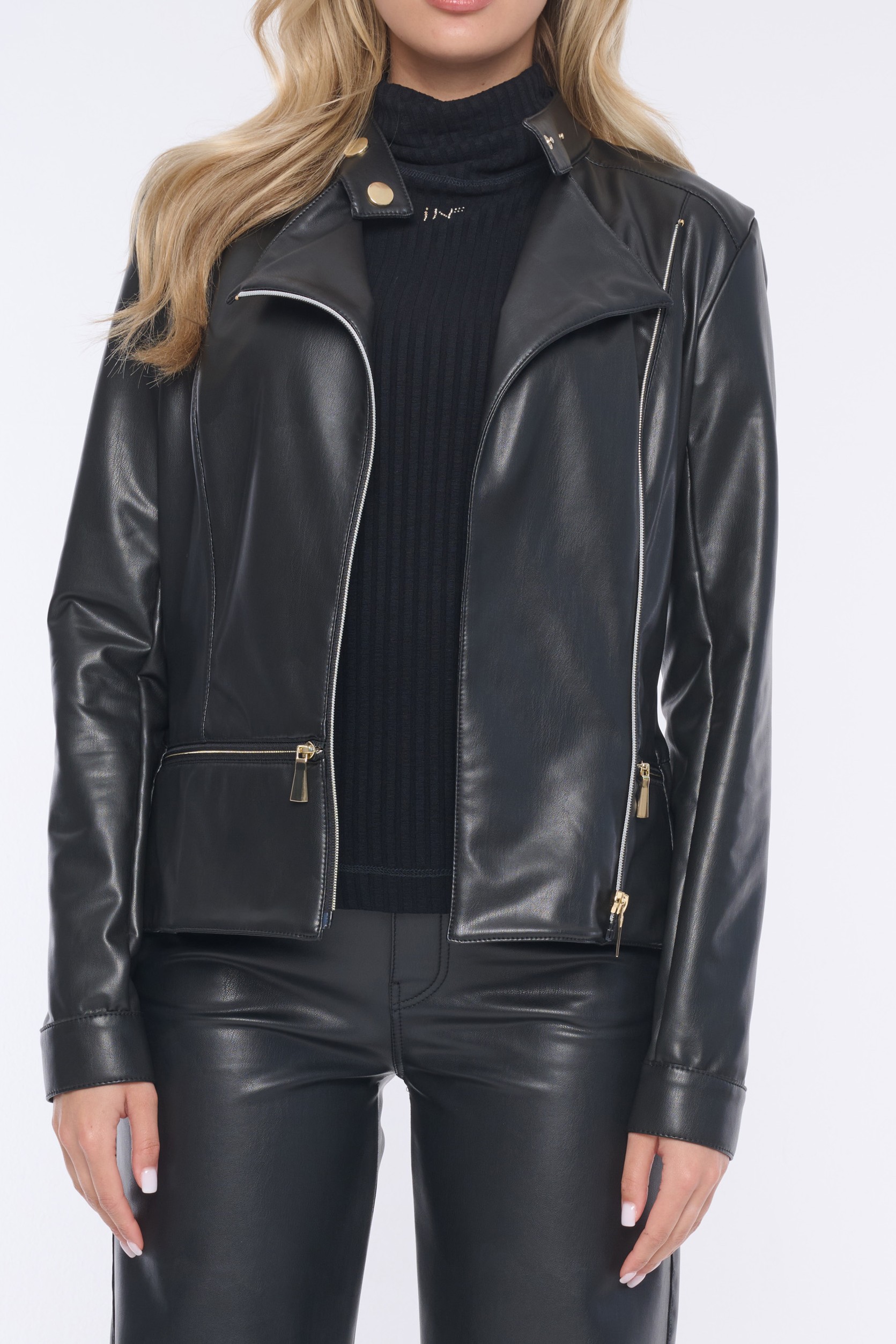 Evergreen křivák INFINITE s efektními černozlatými zipy ze strečové ekokůže. Možnost nosit zapnutý i rozepnutý. Vhodný k mnoha outfitům.