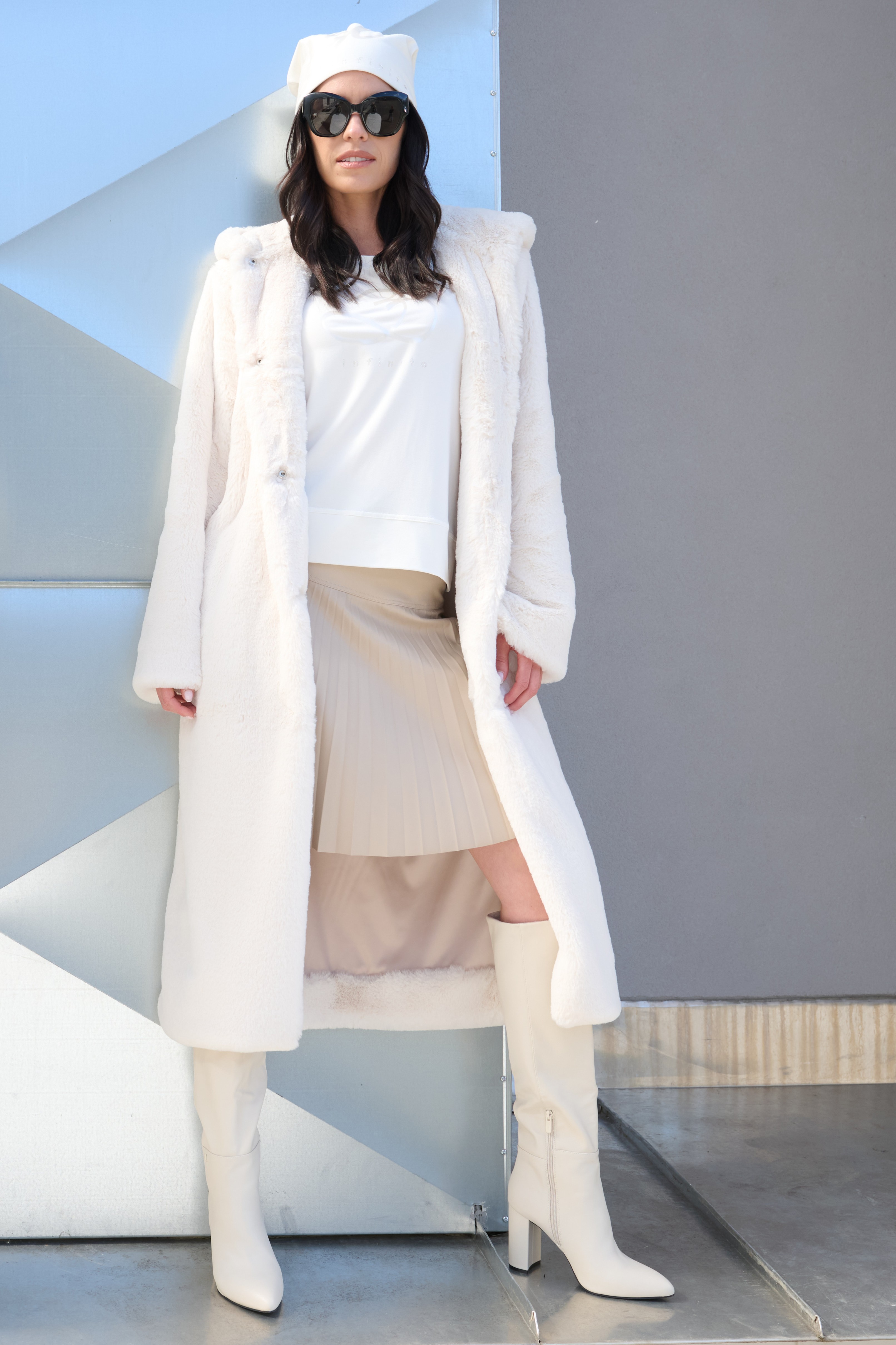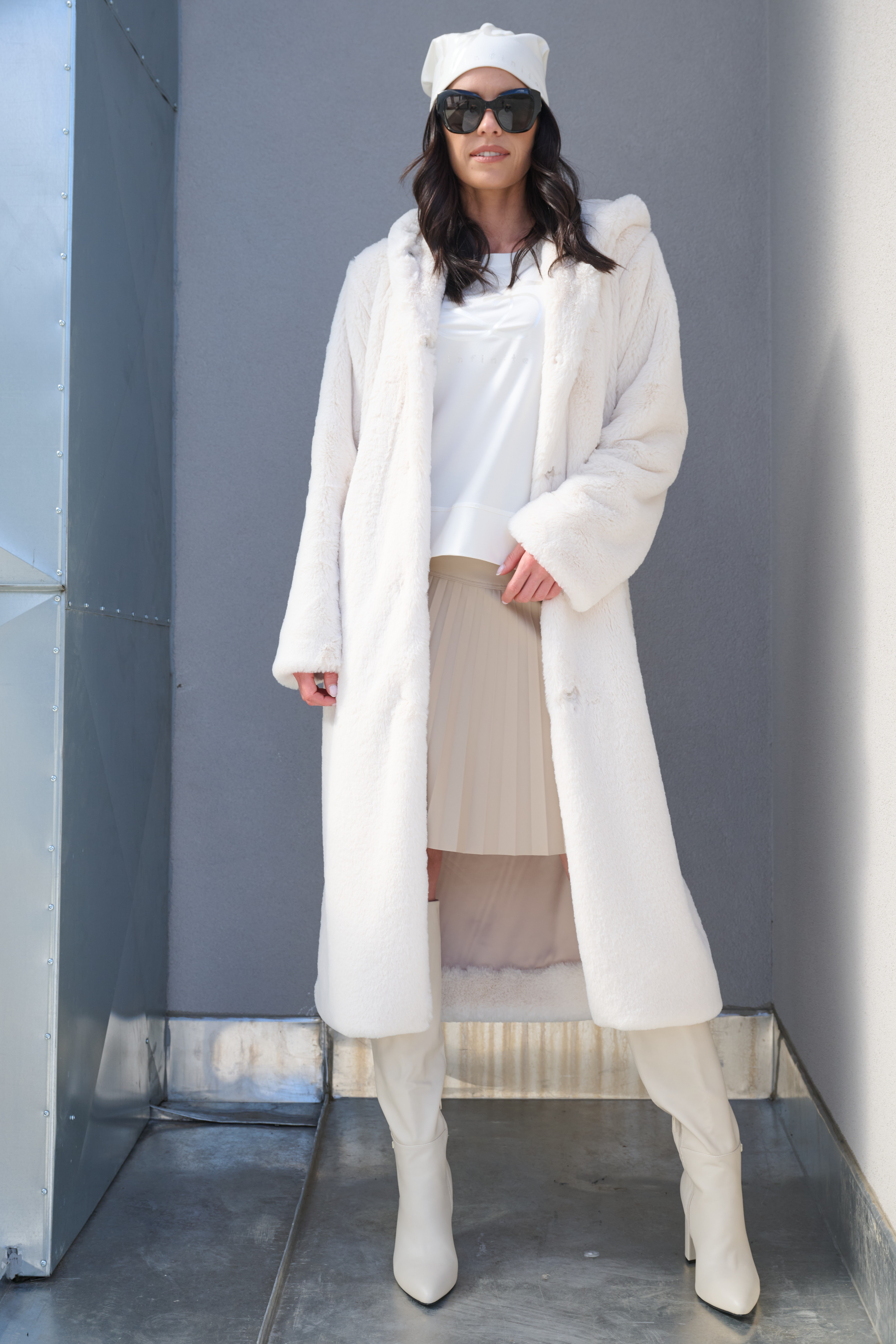 Moderní příjemný kabát z umělé kožešiny s kapucí a příjemnou lesklou podšívkou, ideální na přechodové období i lehkou zimu. Krásně se kombinuje s elegantním i ležérním outfitem.
