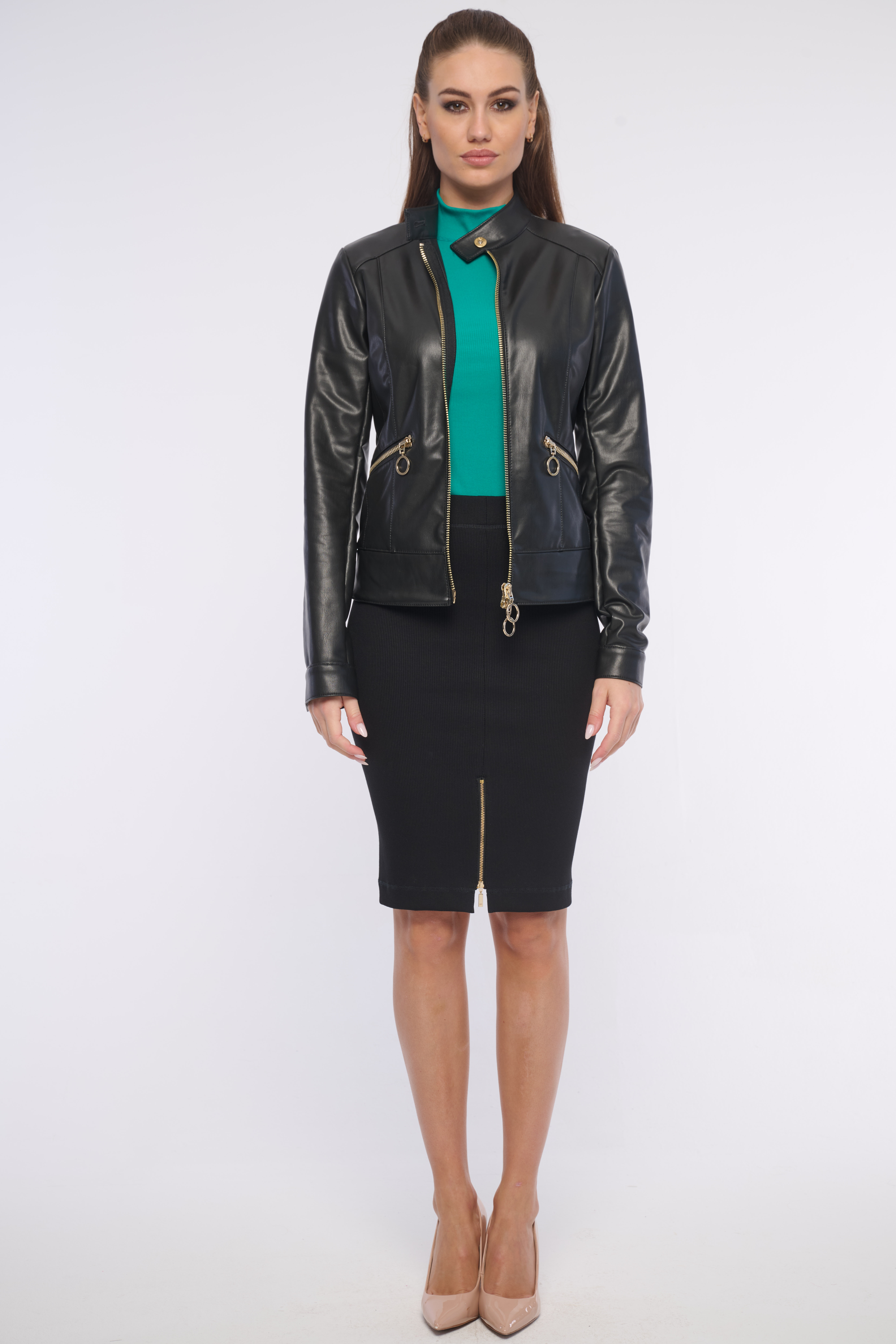 Koženková bundička s výraznými zlatými zipy. Klasický kousek, který se hodí ke každému outfitu. Dostupná ve dvou barevných variantách.