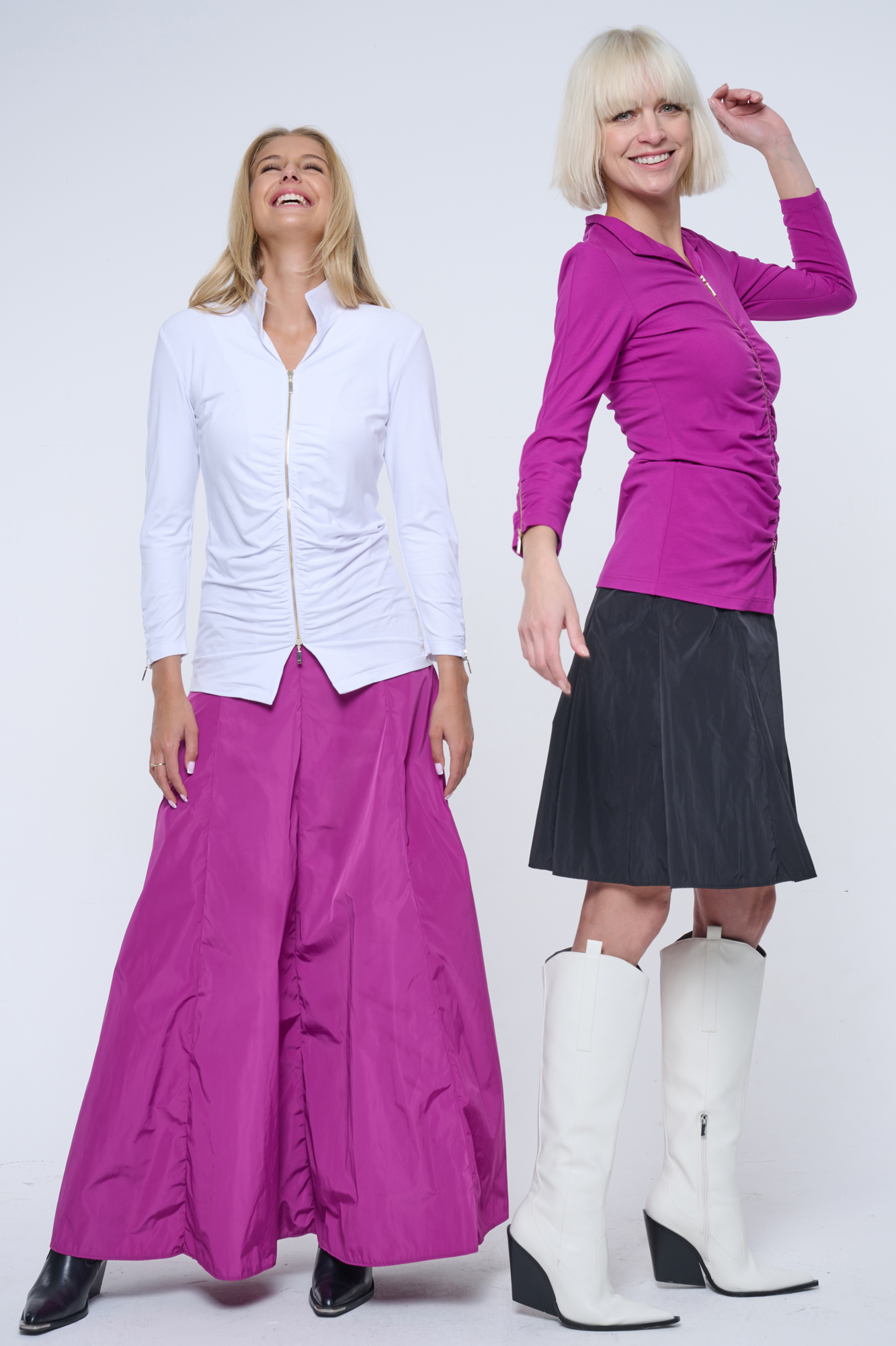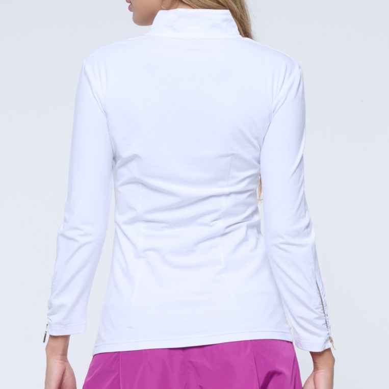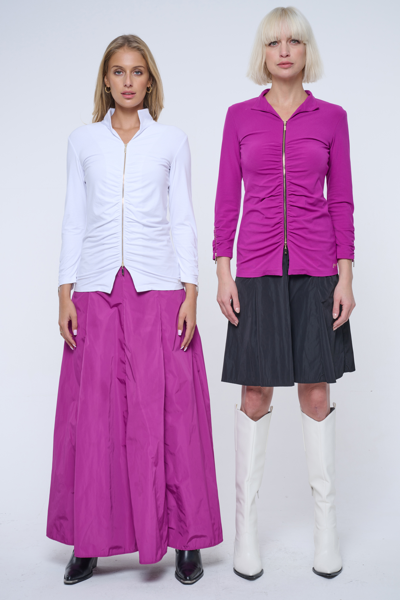 Úpletová elastická košile se zlatým zipem. Malé krystalové logo INF.