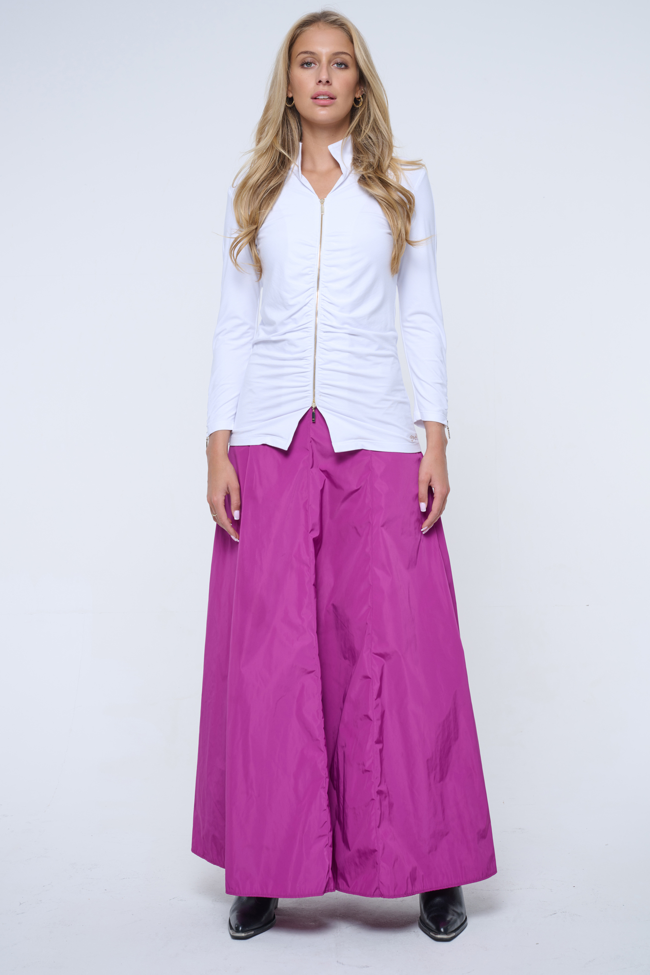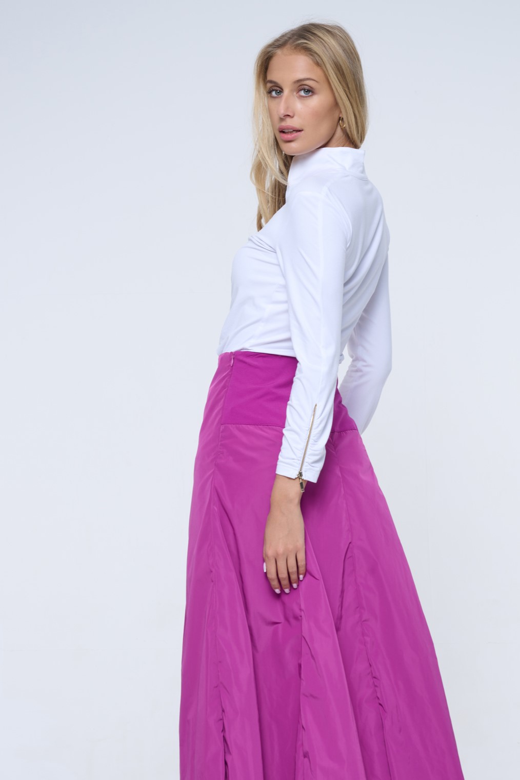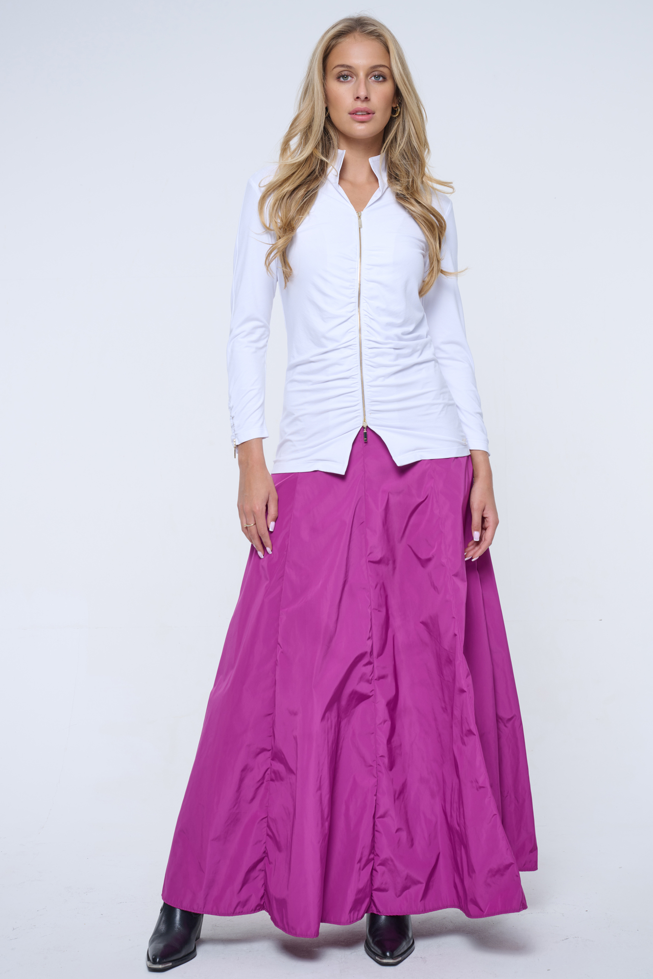 Úpletová elastická košile se zlatým zipem. Malé krystalové logo INF.