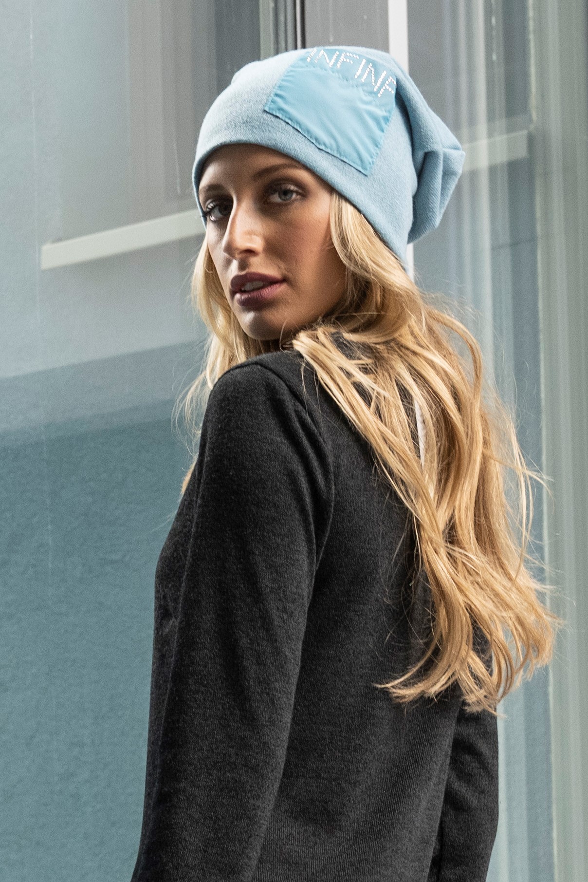 Čepice s kapsičkou a stříbrnými krystaly INF.