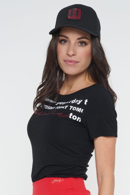 Kšiltovka s nášivkou s ozdobným logem INF z červených krystalů Preciosa. Možnost přizpůsobení velikosti kšiltovky.
