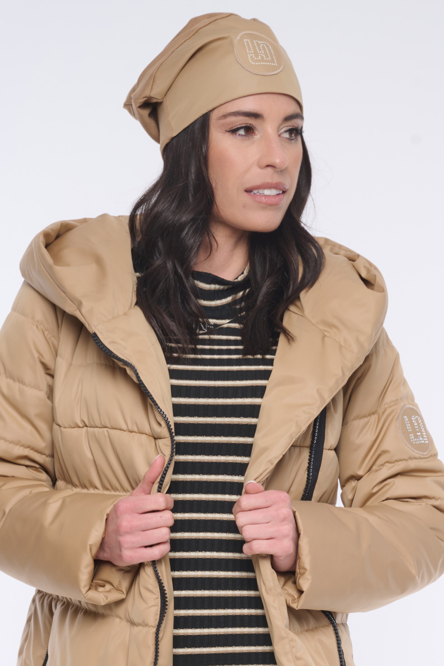 Městská módní čepice s nášivkou a logem INF z krystalů Preciosa.